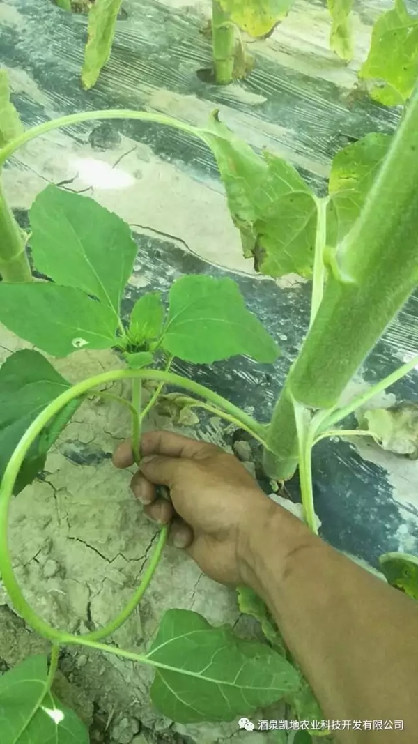 7、向日葵生長后期對于多數(shù)較小的營養(yǎng)枝,在花盤膨大期需要大量養(yǎng)分時,養(yǎng)分會流回主莖,營養(yǎng)枝自動收縮枯萎,不會影響產(chǎn)量。