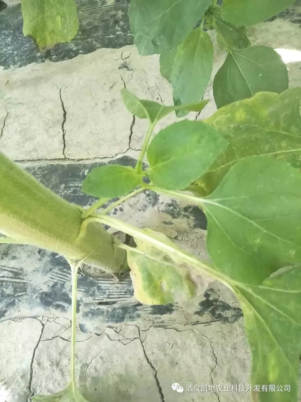 2、向日葵出苗后,麻雀、野雞及兔子等危害使幼苗主生長點損傷,在子葉或真葉腋芽處會有營養(yǎng)枝出現(xiàn);