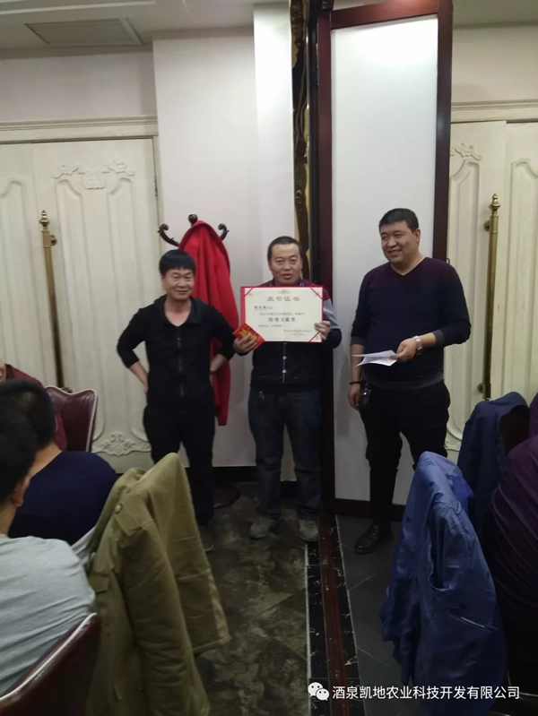 酒泉凱地農(nóng)業(yè)總經(jīng)理薛治軍先生代表公司向全體員工及家屬致新春賀辭:大家過年好!在這新春佳節(jié),美好的日子里,酒泉凱地農(nóng)業(yè)、甘肅酒玉種業(yè)隆重舉行“2017年度優(yōu)秀員工表彰大會及新春團(tuán)拜會”,我代表公司向所有同事及家屬拜個(gè)晚年,祝大家新春快樂,身體健康,工作順利,闔家歡樂。