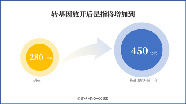 轉基因種子放開三年后,玉米種業(yè)市值將增長到 450 億元。