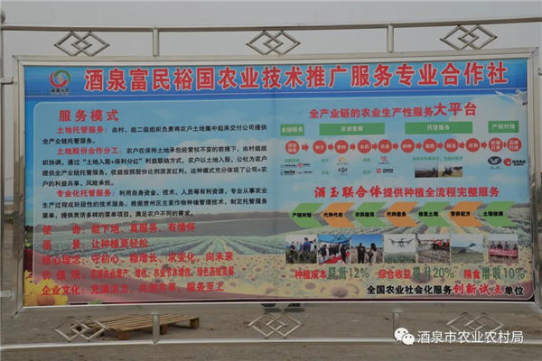 酒泉富民裕國農(nóng)業(yè)技術(shù)推廣服務(wù)專業(yè)合作社以黨建引領(lǐng)合作社發(fā)展,提出了“支部建在產(chǎn)業(yè)鏈上,能人聚在產(chǎn)業(yè)鏈上、黨員示范在產(chǎn)業(yè)鏈上”的發(fā)展思路,采取“黨支部+龍頭企業(yè)+農(nóng)民合作社+家庭農(nóng)場+種植大戶”的方式,開展農(nóng)業(yè)社會(huì)服務(wù),使黨的組織優(yōu)勢和產(chǎn)業(yè)發(fā)展優(yōu)勢相互支撐、互融共通,實(shí)現(xiàn)產(chǎn)業(yè)發(fā)展到哪里,黨的支部建設(shè)就跟到哪里,借助黨的組織建設(shè)推動(dòng)農(nóng)民合作社規(guī);、產(chǎn)業(yè)化運(yùn)營。目前,該合作社全程托管玉米制種標(biāo)準(zhǔn)化示范田2010畝,建立小麥智慧標(biāo)準(zhǔn)示范田230畝。半托管玉米制種田4.5萬畝,帶動(dòng)托管、半托管服務(wù)大田玉米、向日葵、小麥等農(nóng)作物面積達(dá)10萬畝,輻射帶動(dòng)全區(qū)小農(nóng)戶4000余戶。